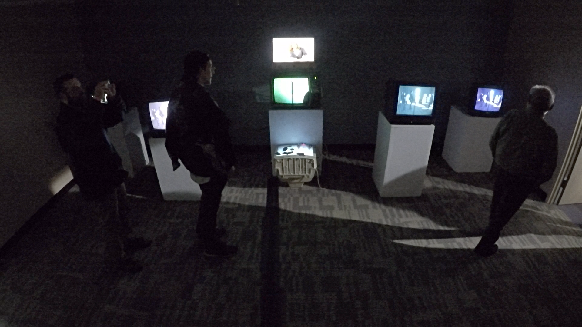 Displayed were real-time video content using 5 Cathode Ray Tube (CRT) TVs, a 2011 iMac, and a GoPro Hero5.